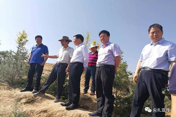 由于受副热带高压控制,7月10日起尖扎县开始出现高温天气,造成大面积农作物受灾,抗旱形势十分严峻。7月21日上午,州委副书记、州政府州长乔学智在尖扎县委副书记、县政府县长旦增,县政府副县长王征及县林业、水利等部门负责人的陪同下,深入昂拉乡洋江一期造林绿化区察看抗旱保苗工作情况。随后赴能科乡下扎村察看农作物受灾情况,并就下一步抗旱保苗作出安排部署。